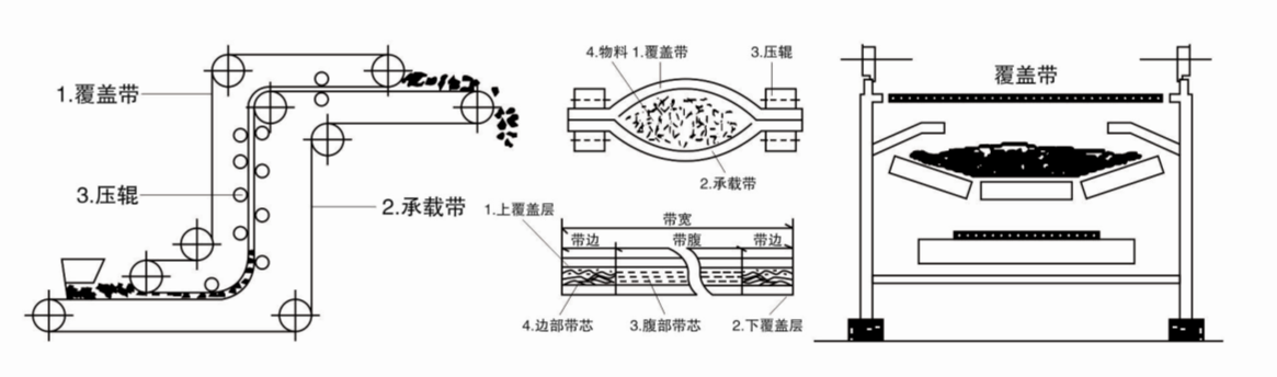 覆蓋密封輸送帶為輸送系統(tǒng)遮蓋了環(huán)境的灰塵、水、風(fēng)。骨架層采用的是特殊的尼龍織物、鋼絲簾線層等,不僅具有優(yōu)良的縱向彈性,也有優(yōu)良的橫向剛性,因此廣泛應(yīng)用在卸料機、回收裝置、自動卸料輸送機等。