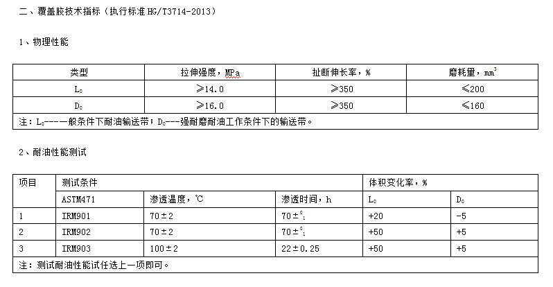 耐油輸送帶是由多層全棉帆布、滌棉交織帆布、浸膠尼龍帆布、EP帆布為骨架材料,覆有具有耐油性能的覆蓋膠,經(jīng)過壓延、成型、硫化等工序制作完成。